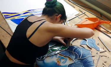 Artiste et artisane, Laura Savry-Cattan partage son temps entre la peinture et la création de vitraux. Son travail figuratif est alimenté par des questionnements autour de l'intime et du politique, mettant des techniques traditionnelles au service de représentations nouvelles.